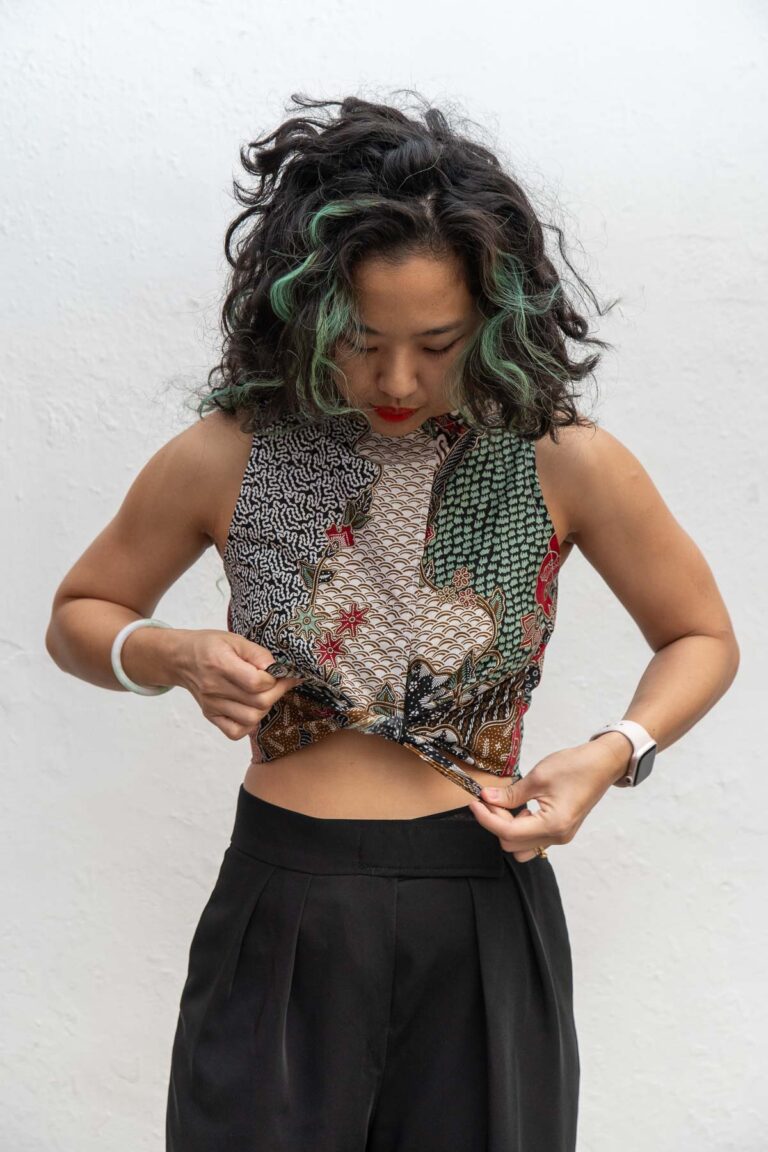 This super versatile top can be worn in a couple of ways- as is, front to back, or for a more fitted look, you could do a tie back. It’s ideal to cover up after yoga or the beach!